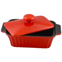 Crock-Pot Denhoff Ribbed 8.5 In. Rectangular Stoneware Nonstick Casserole Dish In Red With Lid