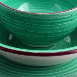 GIBSON Elite Serenade 16-Piece Green Round Stoneware Dinnerware Set