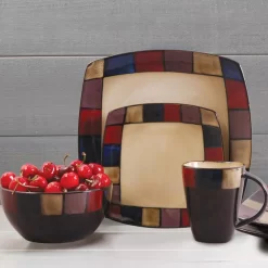 Gibson Home Color Vibes 12-Piece Casual Assorted Colors Stoneware Dinnerware Set (Service For 4)
