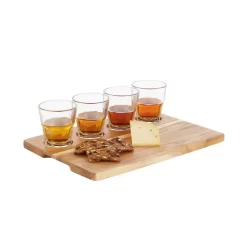 Libbey Craft Spirits 5.5 Oz. Whiskey Flight Glass Set With Wood Carrier (4-Pack)