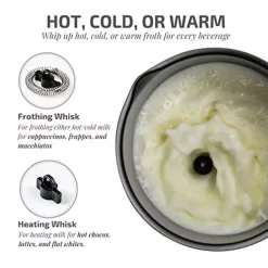 Ovente 8.1 Oz. White Stainless Steel Electric Milk Frother 3 In 1-Warming, Heating And Frothing, See-Through Lid Plus Whisks