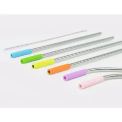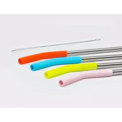 ExcelSteel 10-Piece Stainless Steel Silicone Tip Straw Set With Cleaning Brushes