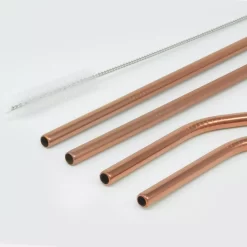 ExcelSteel 10 Pc Reusable Rose Gold Straw Set W/ Cleaning Brushes