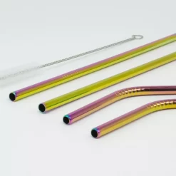 ExcelSteel 10 Pc Reusable Rainbow Straw Set W/ Cleaning Brushes