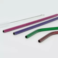 ExcelSteel 10 Pc Reusable Powder Coated Stainless Steel Straws W/ Cleaning Brushes