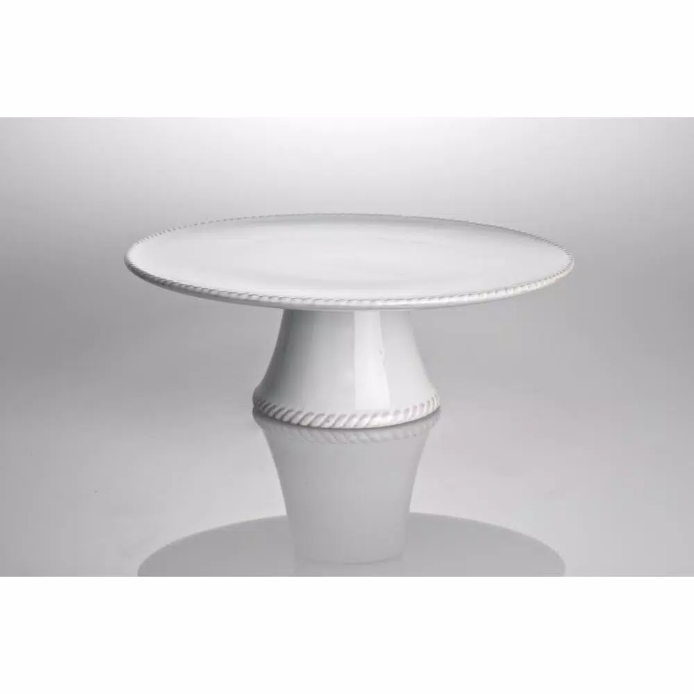 Just looking at this attractive ceramic cake plate reminds one of a French patesi ere. A subtle rope surrounds the lip of the plate area and appears again on the bottom to ground it. Pile on the cup cakes.