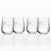 This is handmade glass at its very best. A distinctive hand applied glass rope is the detailing. The glass is clear with slight optic look. Set of four.