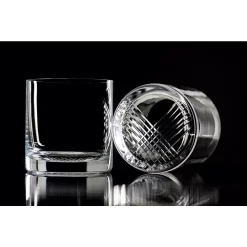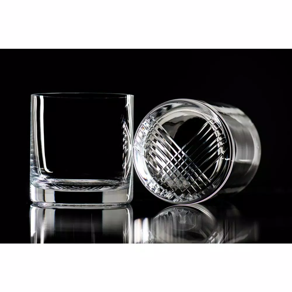 The New Orleans double old fashioned glass is a generous sized, 16 oz., whiskey glass featuring a criss-cross design engraved into its base. This is the perfect glass for entertaining. Mouth-blown in Poland, this glass is sure to impress. This glass has a matching decanter.