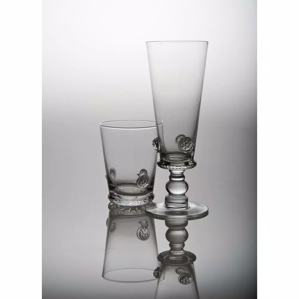 This is a wonderful footed pilsner glass with an interesting traditional motif. It adds a special appeal to a casual dinner. This glass is dishwasher safe.