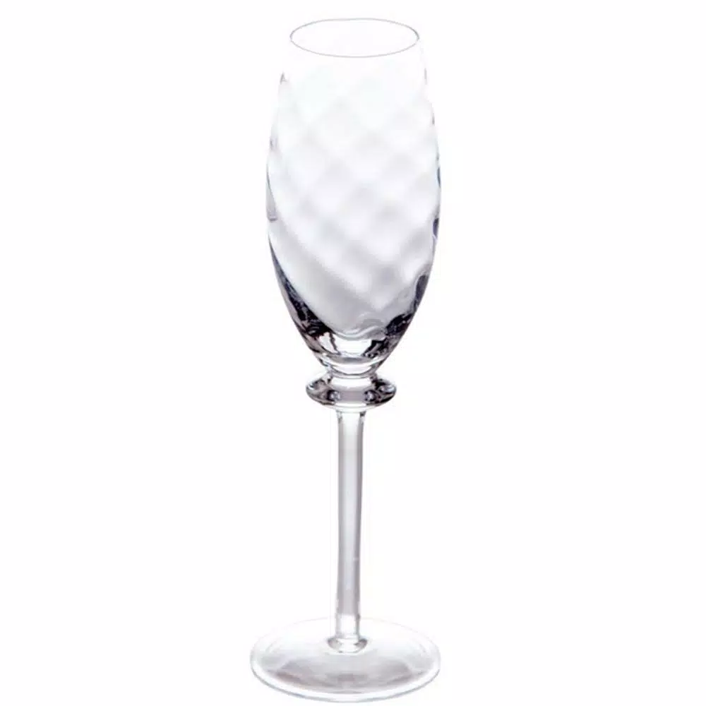 This is an elegant yet sturdy lovely glass flute with a subtle optic top. Champagne has never been so much fun. It is a set of four. We recommend that you hand-wash these glasses.