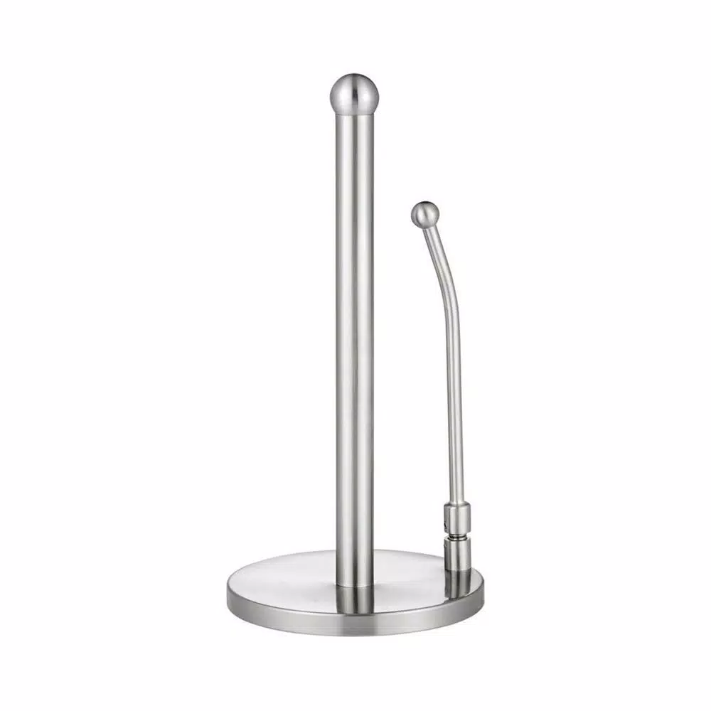 The Alpine Stainless Steel Paper Towel Holder with its sleek design and clever spring-loaded retaining arm is a welcome addition to any kitchen, bathroom, restaurant tabletop or other area where paper towels are nearby for quick cleanup. As you pull off one or more sheets the retaining arm remains in contact with the roll, easing the tear-off process while keeping the rest of the towels neatly contained. The freestanding paper towel holder accommodates any size or brand of paper towels.