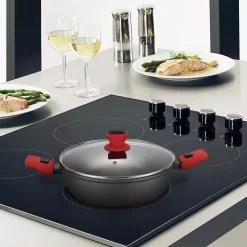 Scratch-resistant 10 in., 4.5 litre non-stick casserole with glass lid, with long-lasting Greblon C2+ nonstick coating on a base of forged aluminum. Greblon C2+ is a high-quality double-layer ceramic nonstick coating for cookware. Not only does it make cooking a pleasure (who doesn’t love to see their perfectly cooked meal slip right off the pan onto the plate), it also makes cleaning up quick and easy. The true genius of this nonstick ceramic casserole lies in the detachable handles: rubber keeps the handles cool to the touch, but best of all, the fuss-free detach function means you can remove handles before placing the casserole in the dishwasher, then store handles inside the casserole to maximize your cupboard space. The aluminum core is energy efficient to ensure even heat distribution and avoid hot spots. Our cookware is BPA free, with abrasion resistance and corrosion resistance to ensure you many years of stovetop use. Suitable for all hobs and ranges, including induction heating. Dishwasher safe: just remove the easily detachable rubber handles before washing. Length 22.83 in. x W 11.02 in. x H 19.68 in. This product comes with a 2-year manufacturer warranty.