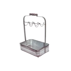 Bring this crockery holder home and add a rustic charm to your settings. Made from galvanized metal sheet, this crockery holder features six symmetrical cup hooks along with a rectangular basket. With a weight capacity of 4.5 lbs., it makes a great tea time accessory that provides you enough space for holding tea pots, milk, sugar and cups. The handle at the top is made from wood that provides a great accessibility while moving it from one place to another.