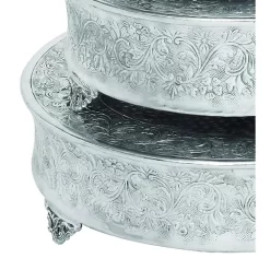 This set of four varied size aluminum cake stands are designed to have a classic appeal. It makes a great piece for formal or special occasions. You can use it to creatively stack 4 different cake sizes on a table or you can use it to create captivating displays of skill. Astounding design with impressive style, these cake stands are stylish piece of utility. Every cake enthusiast can proudly exhibit this exuberant stand and display their masterpieces on it. With its impressive charm, it can be the highlight of every house party.