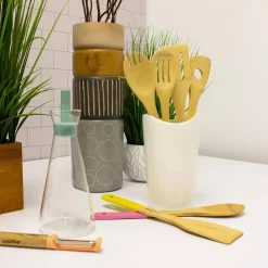 Go green with this eco-friendly set of bamboo utensils! Set includes 4 serving spoons and 2 spatulas for a variety of cooking tasks. Featuring vibrant, multi-colored handles and easy to clean with soap and water, this set will be an appreciated addition to any chef’s collection.