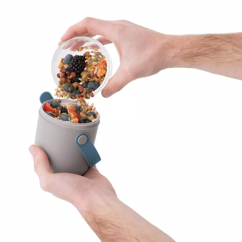 No more soggy bread croutons in your soup or soaked granola in your yogurt. The 2-separate containers of this dual lunch pot keep your ingredients fresh and crispy until you’re ready to eat. Just separate the 2-containers, mix their contents and enjoy. You’re always ready for a meal on the go with this compact 3-piece travel flatware set that provides you with a durable alternative for disposable cutlery. you can easily store and transport the set in the silicone sleeve and just pop it in the dishwasher once your done. This travel set comes with 1 in. x 7 in. knife, 1 in. x 7 in. spoon, 1 in. x 7 in. fork and 1 in. x 7.5 in. x 2 in. x 1 in. silicone sleeve to hold flatware for transport, 1 in. x 6 in. lunch pot.