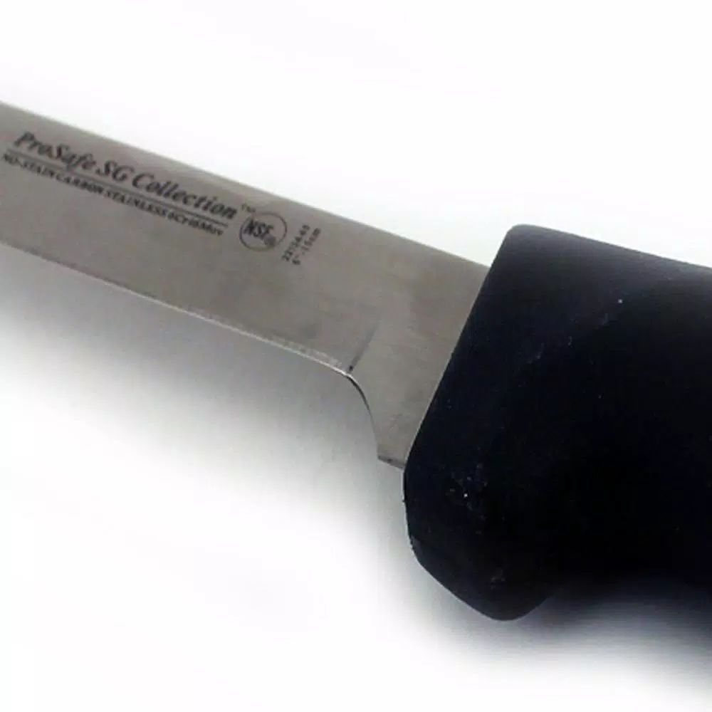 This 6 in. soft grip flexible knife is crafted from high quality, ice-hardened stainless steel, along with an ergonomically designed, soft grip, thermoplastic handle for comfort and function. The blade is easily sharpened and is designed to hold an edge well, and the handle is slip resistant and antimicrobial for safe, reliable, repeated use. Low temperature resistant and safe to use in a freezer.