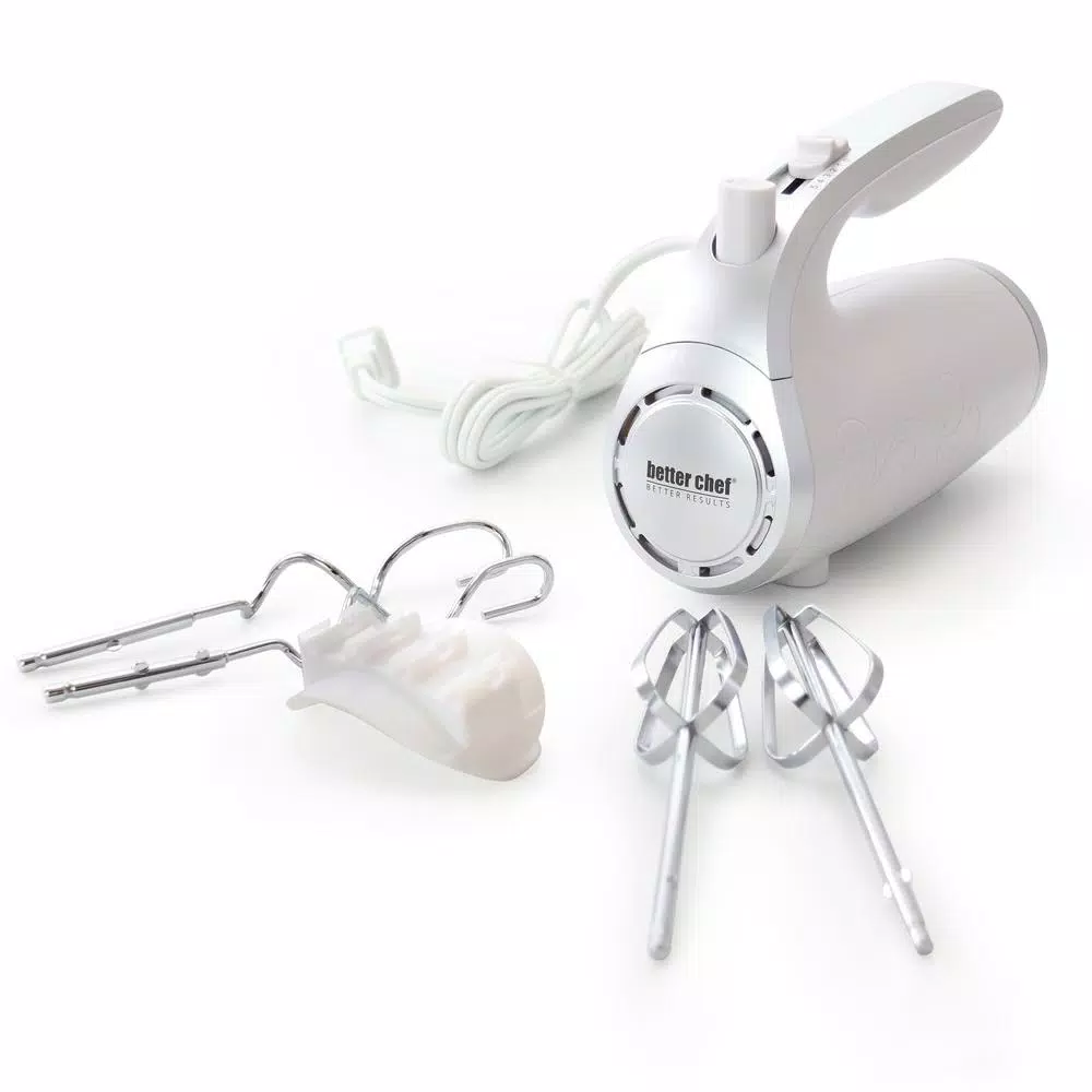 The BETTER CHEF ultra power 5-speed hand mixer is the perfect go to for nearly all of your mixing needs. Comes with stainless steel beaters and dough hooks for super convenient clean ups. Five speeds and two stainless steel turbo beater accessories provide you with the power and control to mix up your favorite cookie dough, mash potatoes and so much more.
