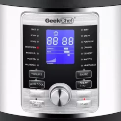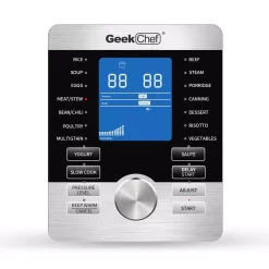 - 【17 PRESET SMART PROGRAMS IN1】Geek Chef provides you the flexibility to manually input cooking times when required and you also have the pre-programmed smart programs already set for many dishes such as Rice, Soup, Eggs, Meat/Stew, Bean/Chili, Poultry, Multigrain, Beef, Steam, Porridge, Canning, Dessert, Risotto, Vegetables, Yogurt, Slow Cook, and Saute.