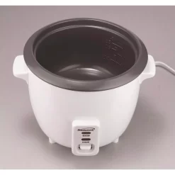 An ideal addition to your “set it and forget it” kitchen appliances. The 10-Cup Rice Cooker with Steamer lets you steam rice and vegetables right on your countertop. Add rice or vegetables and water, and you’re good to go.