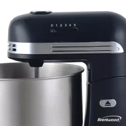 Use the Black Brentwood Appliances 5-Speed Stand Mixer with 3-Quart Stainless Steel Mixing Bowl to mix, beat, whip and aerate eggs, batter, dough and more. It includes both beaters and dough hooks. 5 variable speeds allow you to create thick to thin consistencies. It boasts an easy to store, lightweight, compact design. The stainless steel bowl locks securely into the base and is dishwasher safe.