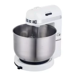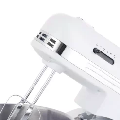 Use the White Brentwood Appliances 5-Speed Stand Mixer with 3-Quart Stainless Steel Mixing Bowl to mix, beat, whip and aerate eggs, batter, dough and more. It includes both beaters and dough hooks. 5 variable speeds allow you to create thick to thin consistencies. It boasts an easy to store, lightweight, compact design. The stainless steel bowl locks securely into the base and is dishwasher safe.