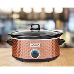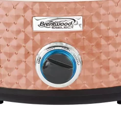 The Brentwood Appliances SC-157C 7-Quart Slow Cooker creates delicious meals while you go on with your day. Put in the ingredients in the morning and have dinner by the time you get home. Serve up plenty of food for dinner parties and potlucks. The dishwasher safe, removable glass lid and ceramic pot make serving easy and clean up a snap. This slow cooker works for your fast, on the go lifestyle while the beautiful quilted copper exterior adds a modern aesthetic to your kitchen.
