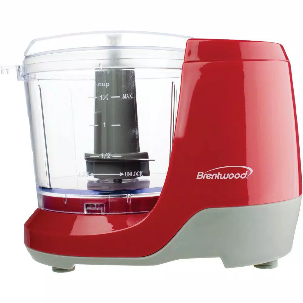 The powerful Brentwood Appliances MC-109R 1-1/2 in. Cup Mini Food Chopper saves you time and energy in the kitchen. With its safe and simple operation, its ideal for prepping dips, salsas, veggies, spices, and more. This Red food chopper is BPA-free and has easy to clean removable parts.