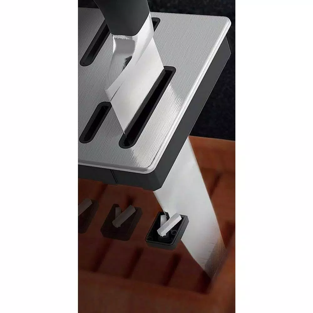 - Built-in ceramic sharpeners automatically sharpen knives with every use