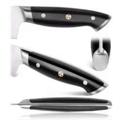 The Z Series is sharply defining excellence in form and function. Keenly angled lines reinforce the sleek, comfortable shape of the handle and focuses attention on the stunning mosaic rivet. Patent Pending Design knives that focuses on ergonomics handle with unique mosaic rivet. limited lifetime warranty.