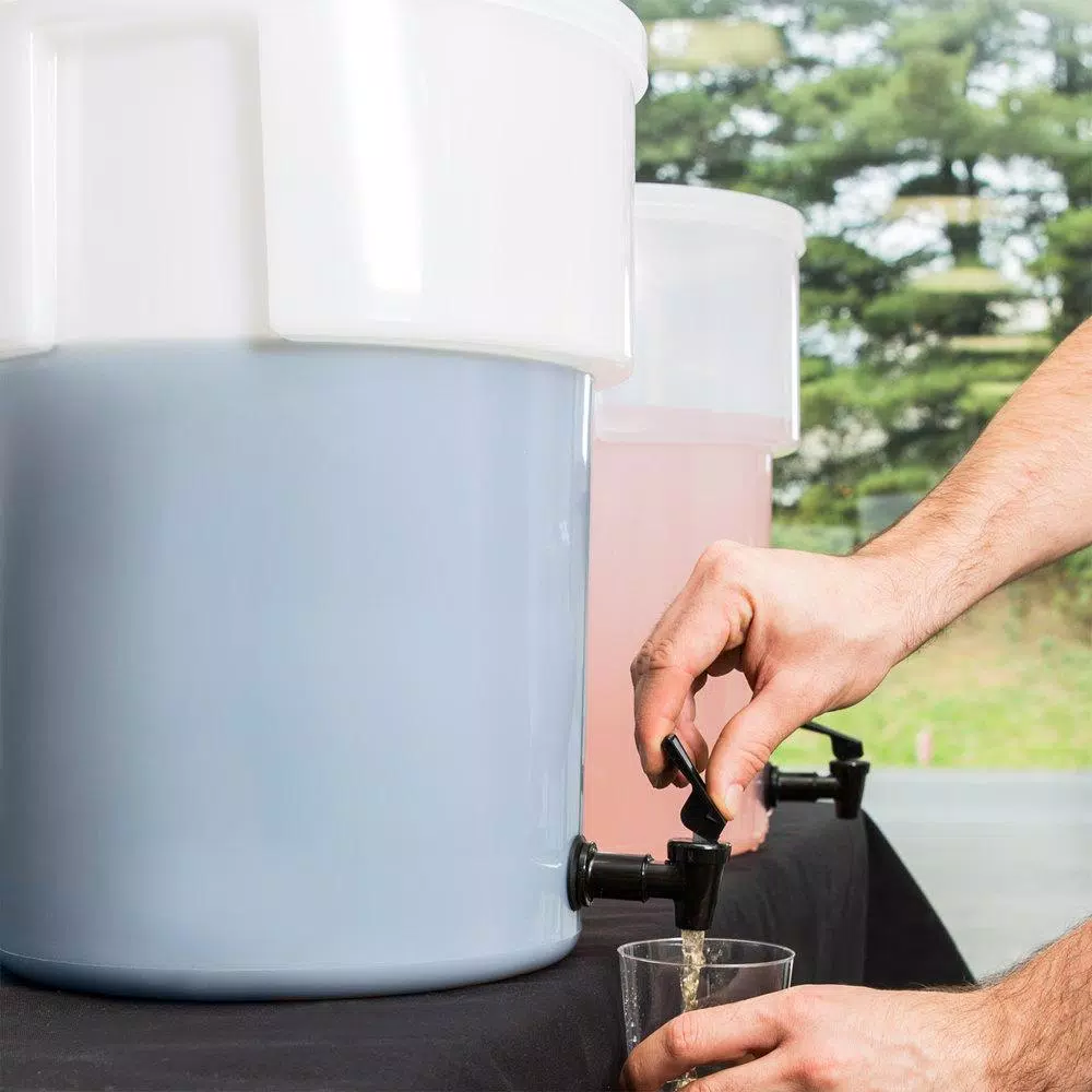 The 5 gal. beverage server is equally at home in your restaurant, church, school or commercial kitchen. Includes labels for Iced Tea, Lemonade, Fruit Punch, Sweetened and Unsweetened Tea. Lidded with attached faucet.