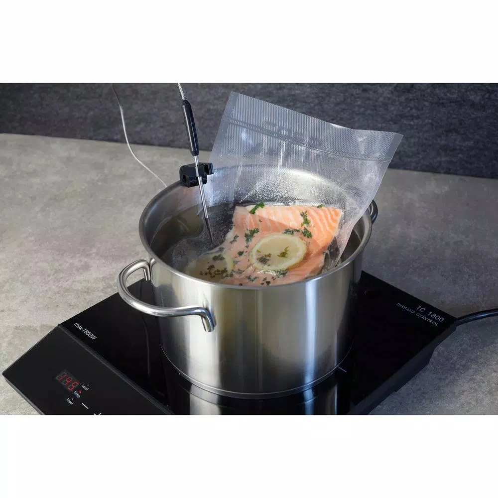 CASO Design specializes in unique, innovative products that exceed expectations with German design and engineering. Perfect for entertaining or everyday use, Caso’s TC 1800 Chef Thermo Control single induction burner offers portable convenience plus precise heating. Designed for induction cookware, it features a cool-touch cooking surface, precision cooking with SmartControl, and a temperature probe to monitor food. Highly portable, use it to cook anywhere indoors – just plug, cook, unplug, then wipe clean after use.