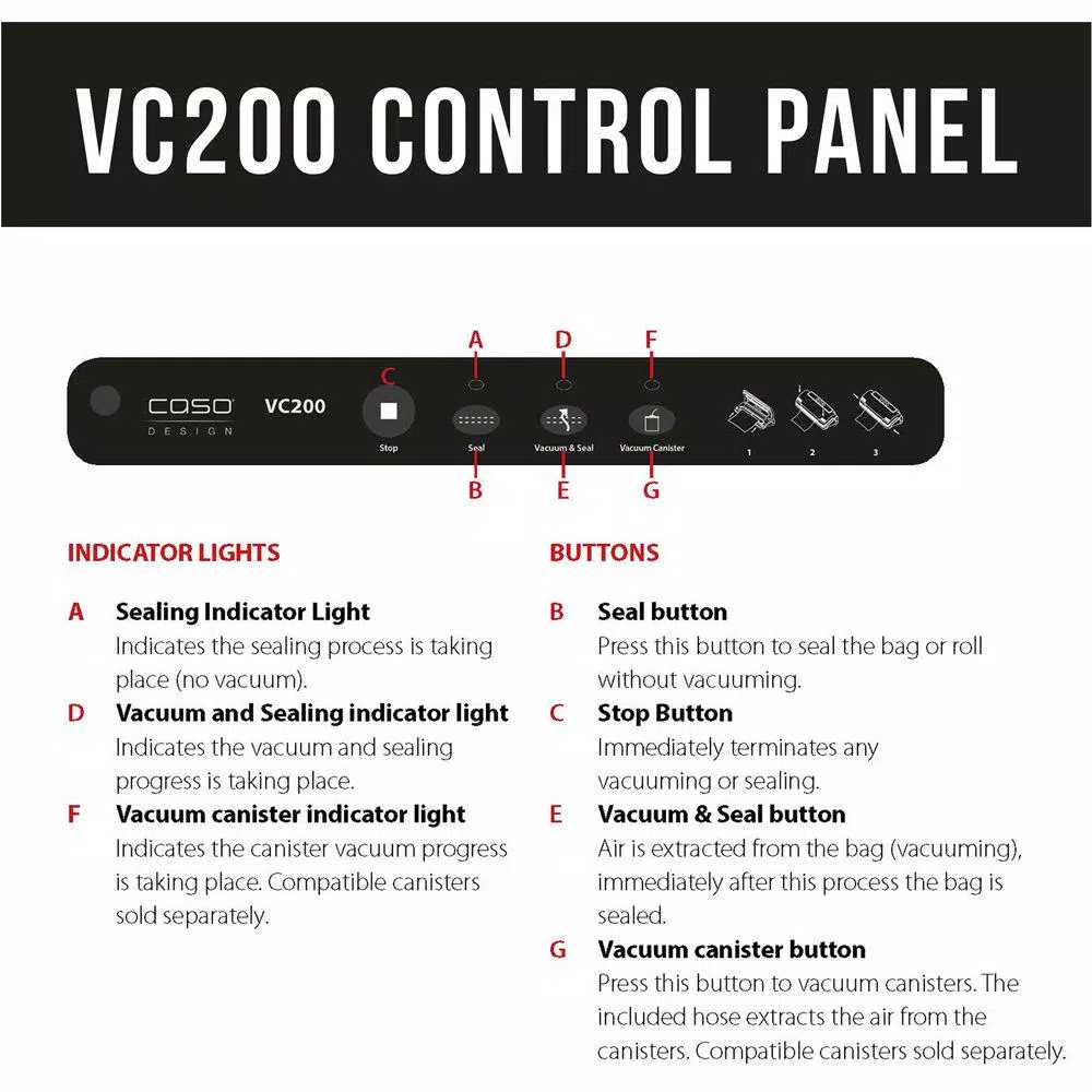 CASO Design specializes in unique, innovative products that exceed expectations with German design and engineering. The Caso VC 200 food vacuum sealer includes an integrated fold-out cutter, roll box, food vacuum hose, and food management app with labeling system. Plus, you receive a set of food vacuum bags and rolls (part #11230) with the purchase of a VC 200. Vacuum sealing foods prolongs shelf life while preserving foods freshness, flavor and nutrients. The best way to store and organize your food, it keeps food fresh up to five times longer than standard storage methods. Use for meat, fish, vegetables, hard cheese, and dry goods. Eliminate food waste and save money by embracing a more sustainable way to manage your food. Perfect for sous vide cooking, pair this food vacuum sealer with our Sous Vide Cooking Stick (sold separately) to cook healthier, juicier, tastier meals.