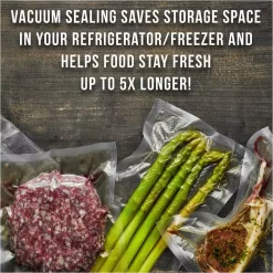 - BONUS SET part #11230 includes 50 (8″ x 11″) food bags, 4 (8″ x 240″) food rolls and 2 (11″ x 240″) food rolls