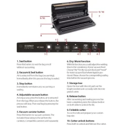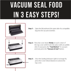 - Full line of compatible food vacuum bags, rolls, and canisters sold separately