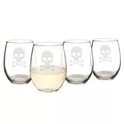 Whether you’re a Halloween enthusiast or aspiring pirate, the Skull & Crossbones Stemless Wine Glasses are perfect for entertaining. Engraved on each glass, the classic skull and crossbones will be an essential part of your spooky decor. Add a little haunt to any affair while serving up your favorite spirits.