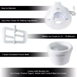 The Classic Cuisine Sorbet, Frozen Yogurt, and Ice Cream Maker comes with delicious recipes that dont require specialty ingredients. Measure, pour, turn it on and enjoy.Simple enough to use every day.