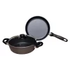 - Tempered glass lid with steam vent; riveted handles with silicone grip stay cool