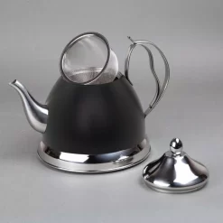 Nobili-Tea 2. 0 qt. Stainless Steel Tea Kettle/Tea Infuser. Manufactured of finely brushed stainless steel with a unique elegant design that will look good in any style kitchen setting. It comes with a removable stainless steel tea infuser so that you can brew your favorite blend of fresh tea leaves. An aluminum encapsulate bottom boosts the heat conductivity by evenly distributing it. Any stove top will welcome this classic design.