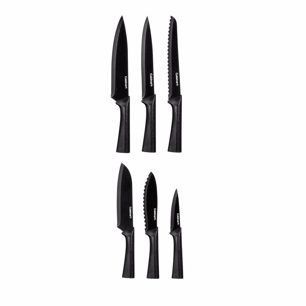 Cuisinart Advantage professional-quality stainless steel knives have a cutting-edge, non-stick color coating that makes slicing easier. Color code your knives during food prep to avoid cross-contamination. In style-conscious hues for today’s design-smart consumer, these premium knives come with matching blade guards and ergonomic handles.
