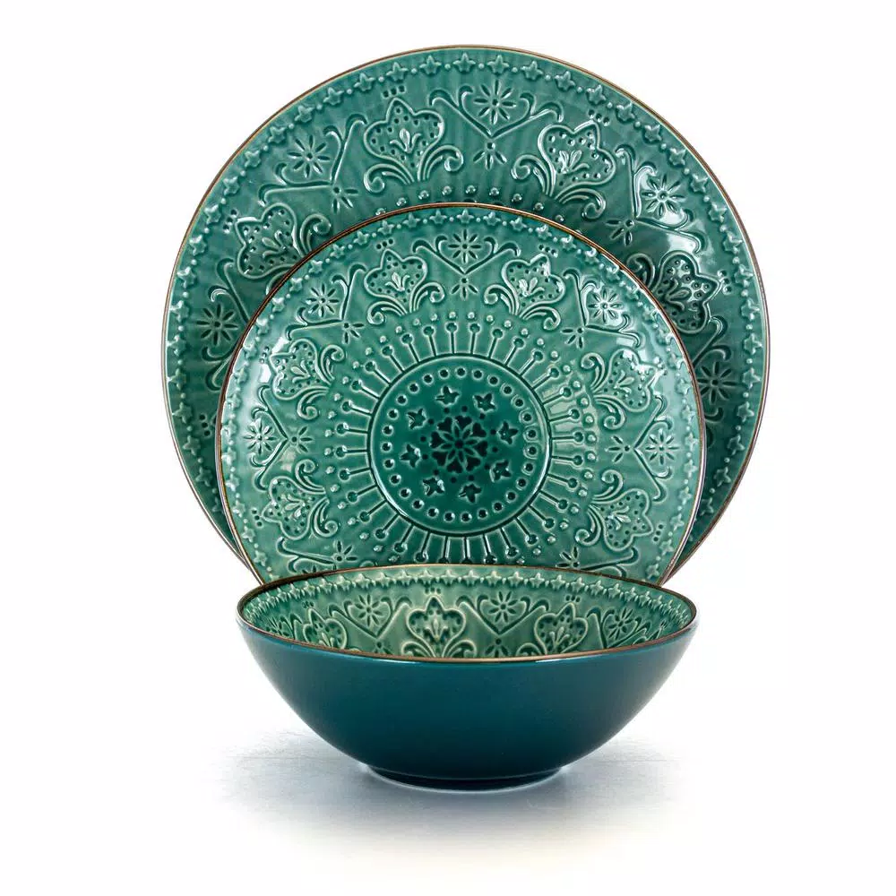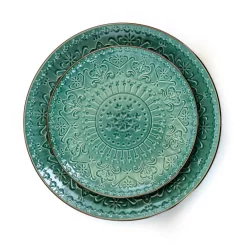 Freshen up your table setting with the textured Sea Foam 16 Piece Dinnerware Set by Elama. With a calming tone of Sea Green and textured mandala style designed plates, this set is ready to make a statement at your next gathering. Stoneware construction of each dish is ideal for special occasions and durable for every day use. Each piece is microwave safe for quick reheating and dishwasher safe for easy cleaning.