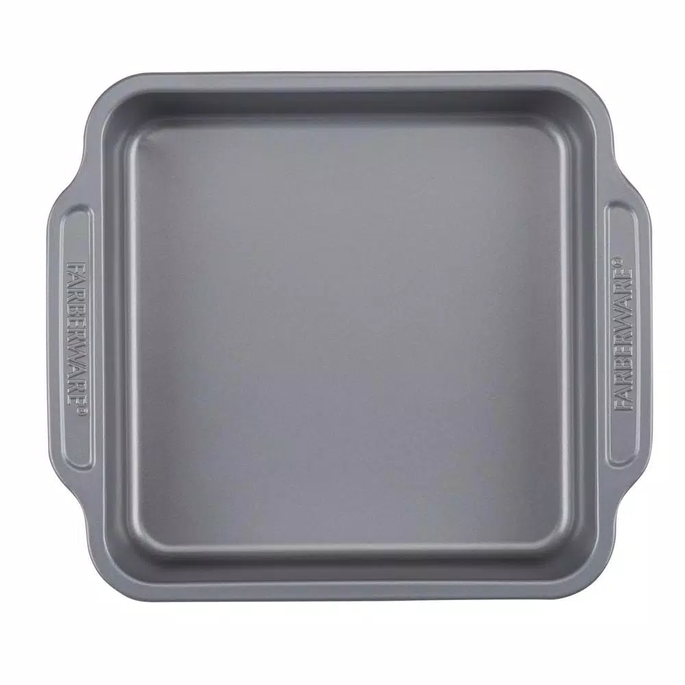 “Ready, set, bake…and roast, toast, and oven-cook to everyone’s delight, with the wide range of essential baking pans in the Farberware Nonstick Bakeware 8-Piece Set. Farberware has provided over a century of reliability, value, and performance to generations of home bakers. Every sturdy and dependable pan in this bakeware set upholds that tradition. Featuring solid-gauge steel construction, the pans feature rolled rim construction to help resist warping and dinging. And long-lasting nonstick inside and out delivers great food release with quick cleanup. This Farberware bakeware set includes an array of essential baking pans for cakes, cookies, muffins, cupcakes, and more. Use the pairs of round and square cake pans to create double-layer cakes, and the rectangular cake pan for sheet cakes, brownies, bars, lasagnas and casseroles. The muffin and cupcake pan is versatile enough to oven-bake mini quiches and savory small bites, and the loaf pan isn’t just for breads-it’s ideal for entrees like meatloaf and even mac’n’cheese. Each pan is oven safe to 450°F, and the set is dishwasher safe for quick cleanup, although hand washing is recommended for the best and longest lasting performance. Perfect for sweet treats and savory dishes, the versatile, durable Farberware Nonstick Bakeware 8-Piece Set makes baking and oven-cooking sweeter for every busy home cook and baker.”