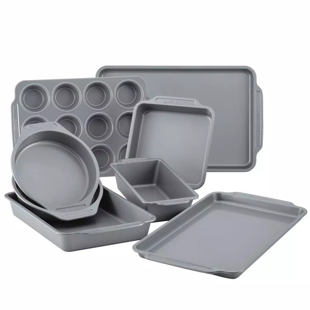 - Set includes an array of essential baking pans for cakes, cookies, muffins, cupcakes, and more