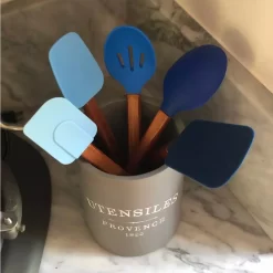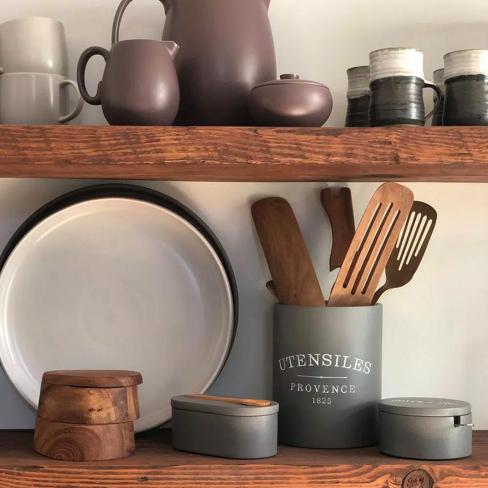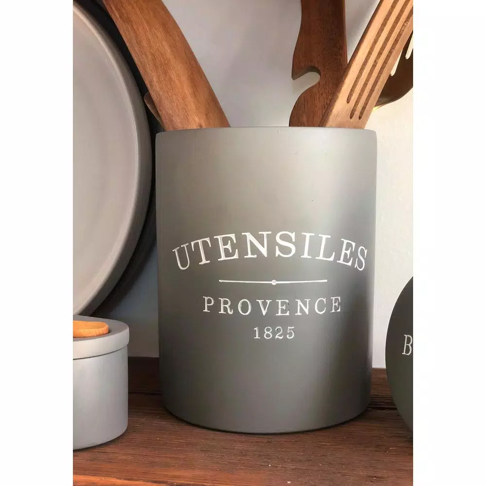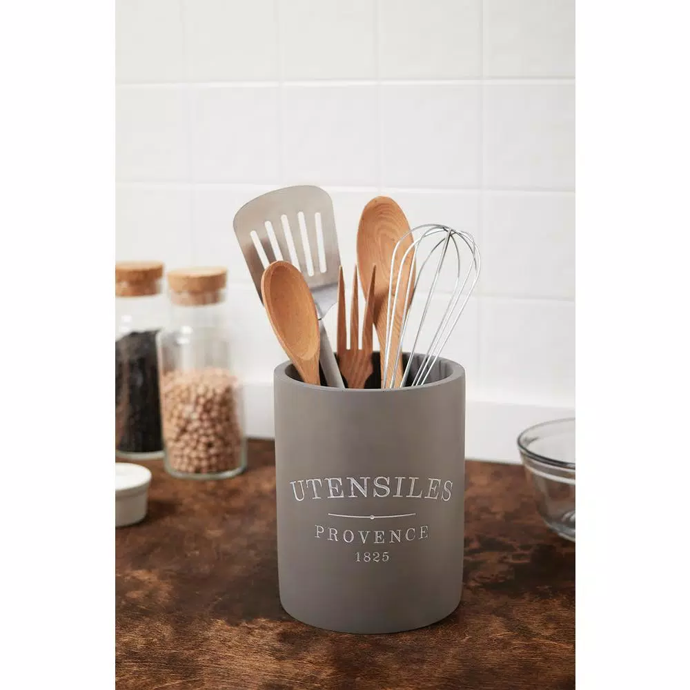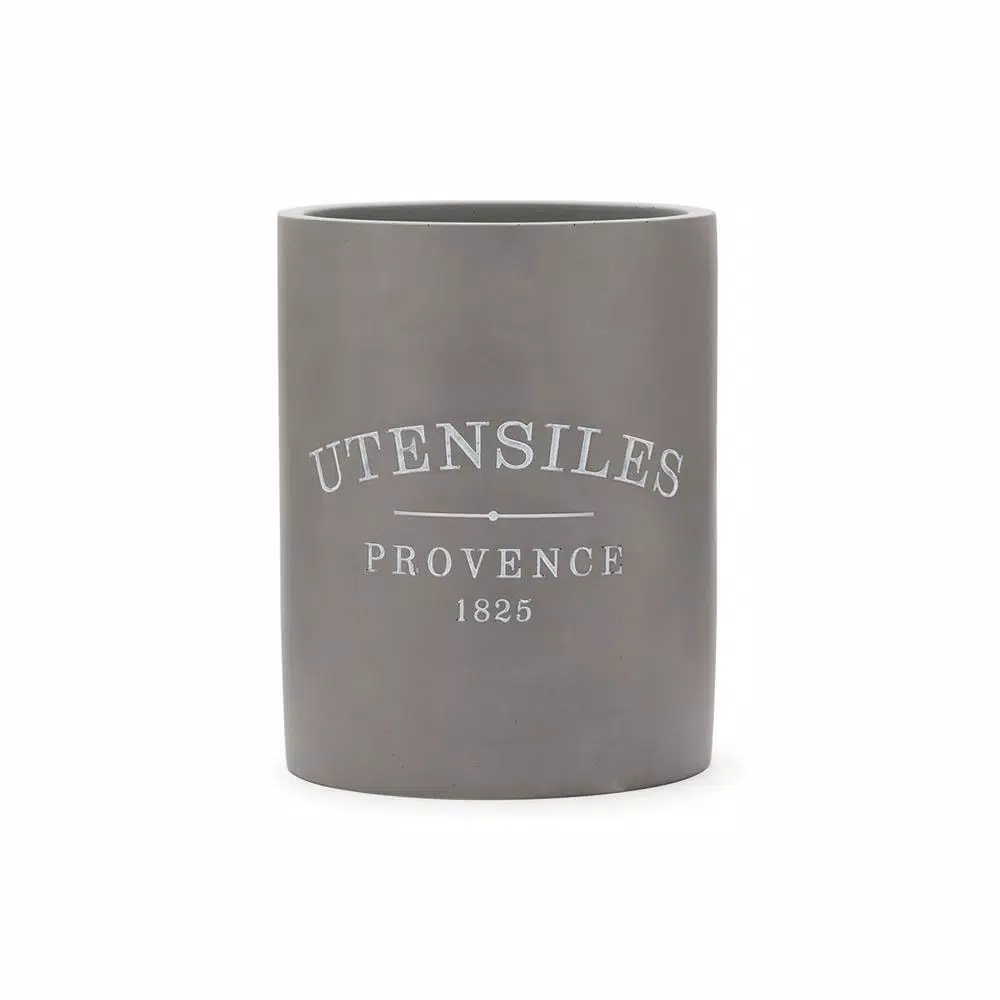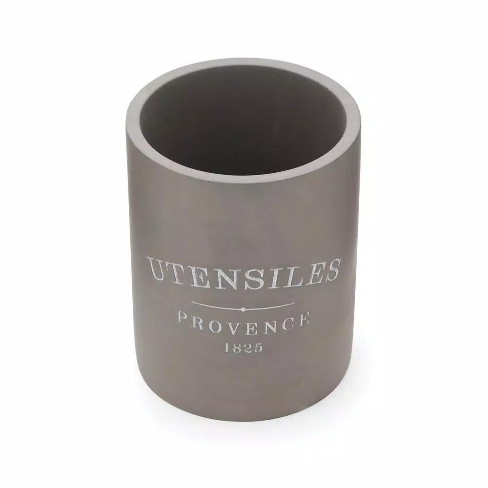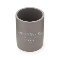 No more frantically searching for utensils while cooking. Keep all your kitchen tools and gadgets in sight and at easy-reach with this Cement Utensil Holder. This stylish storage piece adds convenience and elegance to any kitchen, with its sleek slate grey appearance and attractive inscription. Perfect for any French-inspired decor. Made of sturdy cement stone, this durable utensil holder has a protective bottom to keep your countertop unmarked. Large enough to fit all your whisks, spatulas, tongs and ladles and heavy enough to avoid tips and spills. It can even be used as a unique centerpiece for flowers. This is a perfect addition to any cook’s kitchen.