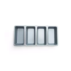 - Overall dimensions: 6.5 in. x 14.5 in. x 2 in., each pan: 5.5 in. x 3 in. x 2 in.