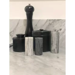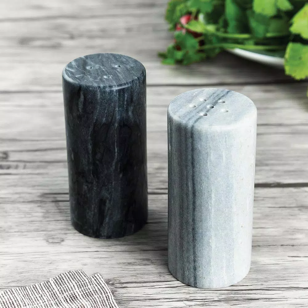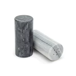 - Absolute elegance on the kitchen table, crafted of natural white and black marble, these shakers are a sophisticated look for entertaining company, sure to be conversation starters at any dinner party