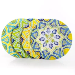 Elevate any table setting with the Gibson Home Seaberry 12-Piece Dinnerware Set! Oceanic blues, bright yellow and a vibrant green complement an ornate medallion design and make this dinnerware set perfect for entertaining at home. Made of light yet durable and chip-resistant melamine, this dinnerware set is perfect for everyday dining, outdoor gatherings and special occasions. This set includes dinner plates, dessert plates and bowls for four