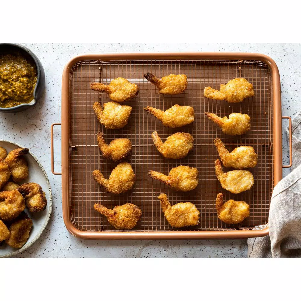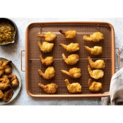 The Amazing Gotham Steel Crisping Fryer That Works in your Oven. Get the crunch & crisp you cant resist without added oils or fat. Unique elevated nonstick tray allows superheated air to pass through & circulate around all 360 degrees of your food for the perfect crisp & brown all around.