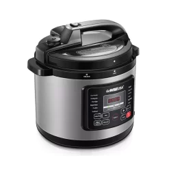 - 12-in-1 electric pressure cooker takes the guesswork out of cooking with its built-in presets for quick cooker such as rice/risotto, multigrain, porridge, meat/stew, poultry, seafood, veggies, bean/chili, canning, yogurt, egg maker, and steam, it also has a slow cook, saute, and manual mode with 3 pressure settings: low, mid, high