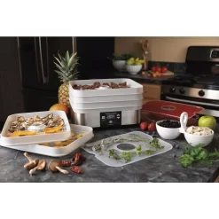 - Continuous airflow provides even drying and eliminates the need to rotate trays